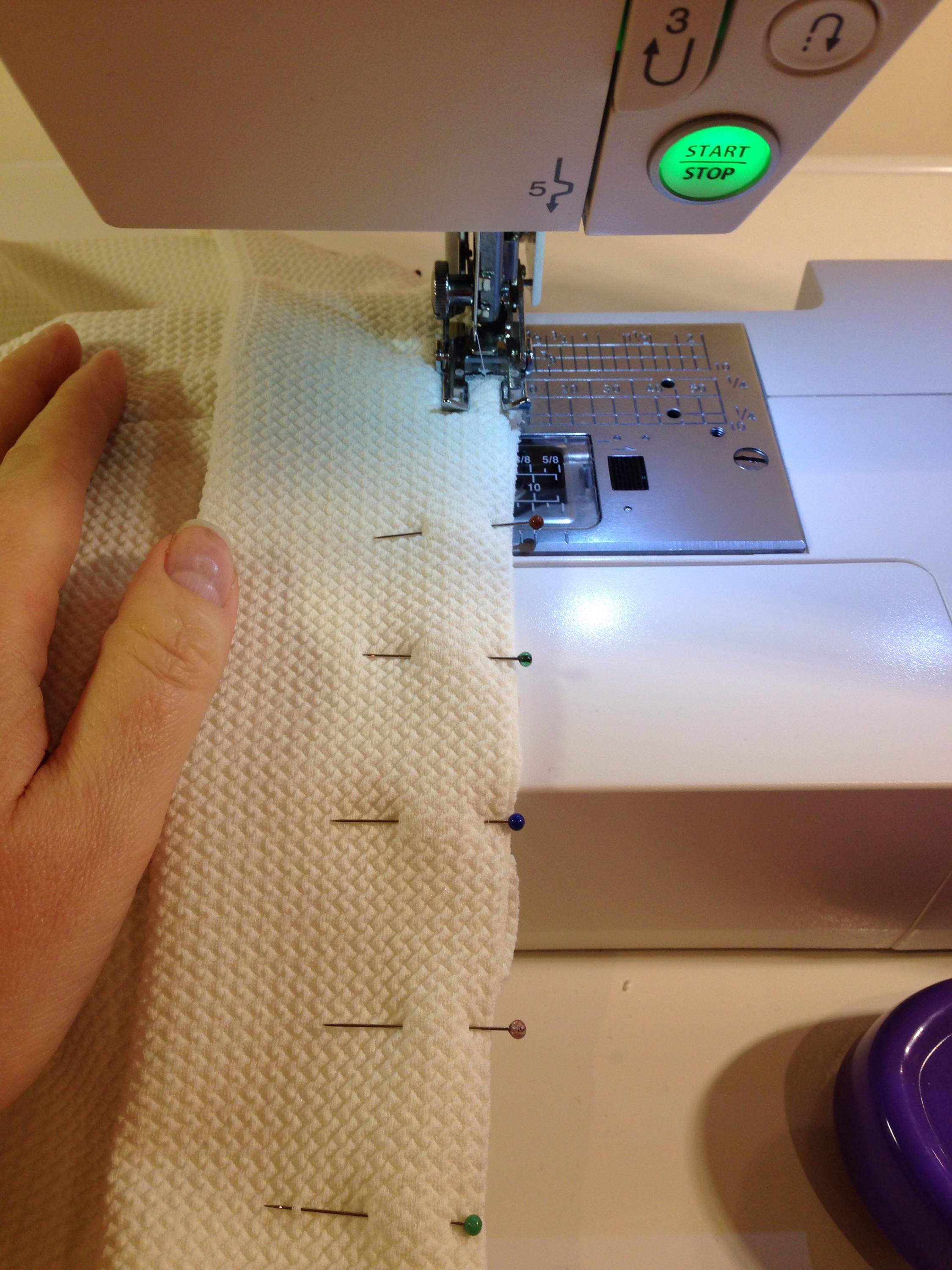 As you needed to stretch the bands around neck, wrists and hem to match the size of the main fabric, I ended up using a LOT of pins. And the go-slow button on the machine. But even with all that, it took under 2 hours to put together, which is a result in my eyes!