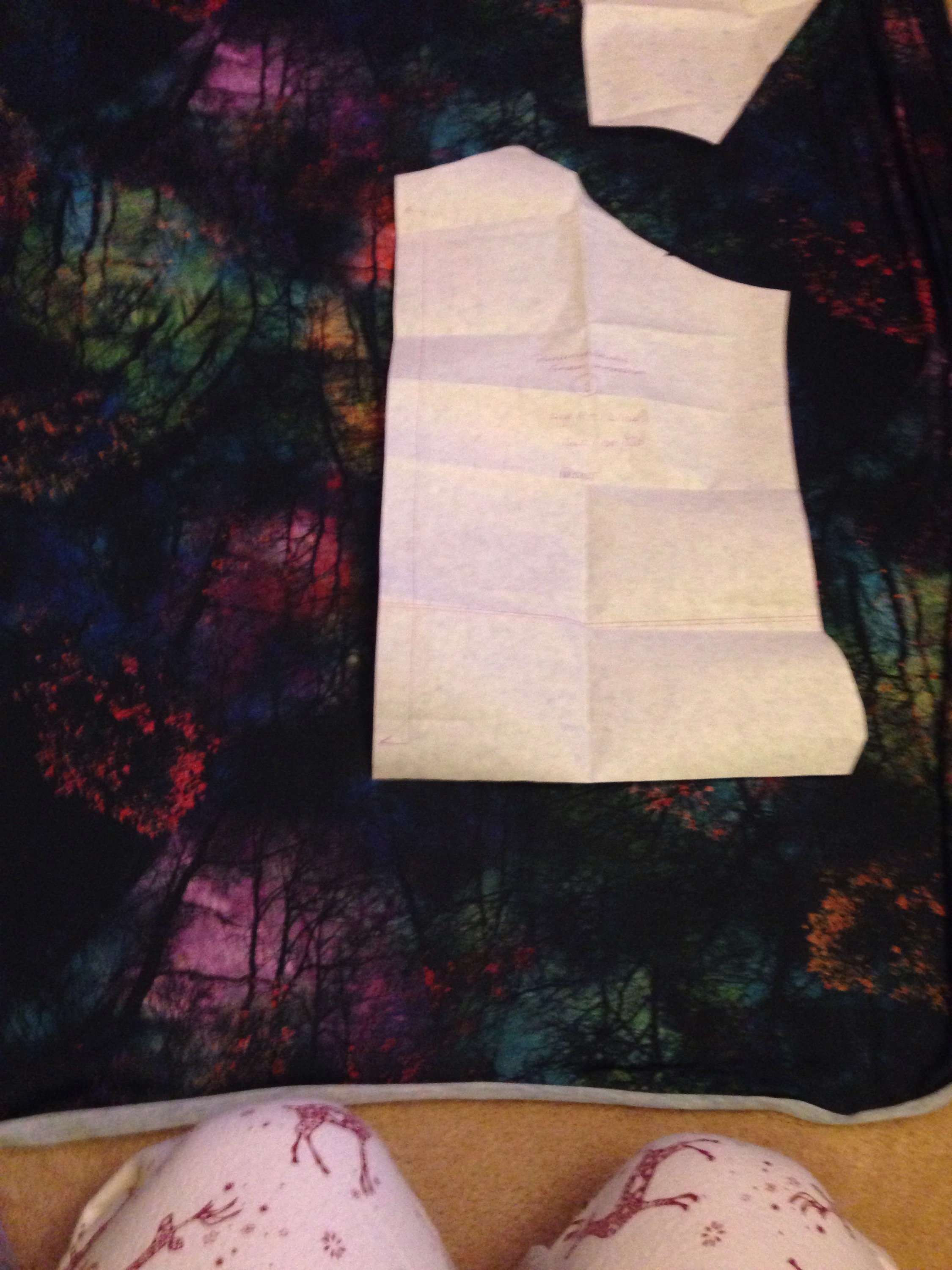 This then led to fun and games with cutting – I obviously wanted the nicest bits of the print to be straight down the front of the bodice. I toyed with cutting on the fold, but in the end I laid the fabric out flat and flipped the pattern piece over from left to right to cut – rather scary but it seems to have paid off!
