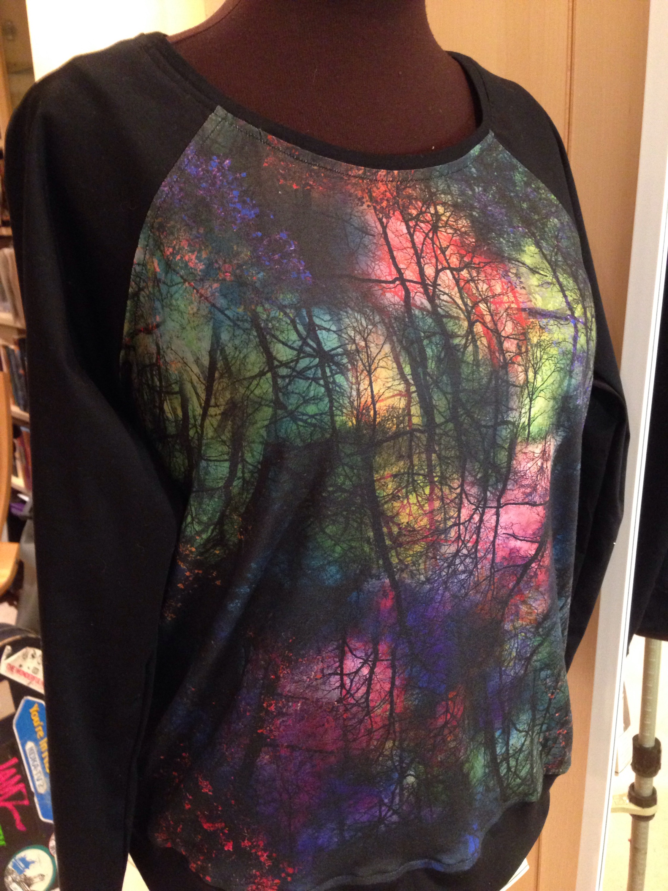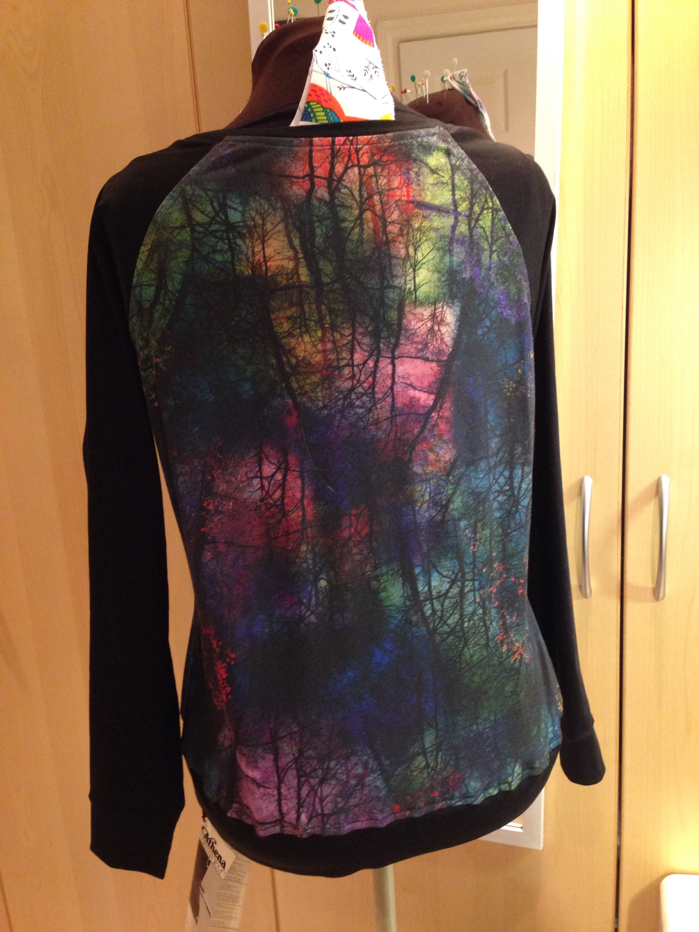 The final outcome is a very happy me with two quite different tops – the cream version I can definitely layer over other things for warmth and it feels very snuggly on. The “tree” (?) print version is more of a top really but none the poorer for that.