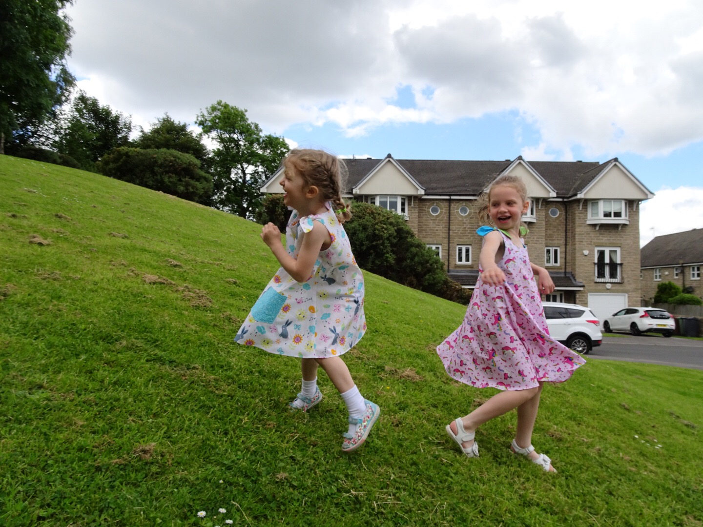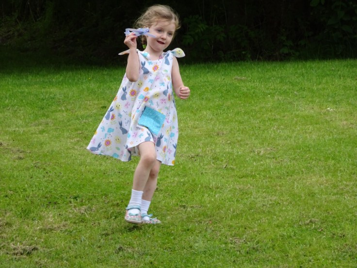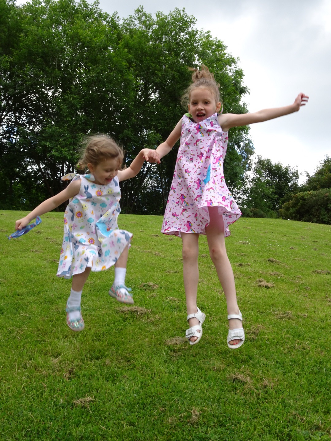 Anyway, all that aside, I genuinely really like the end result and you can see on these photos that the girls do too. I think they’re going to be really useful, cool holiday dresses, particularly on swimming days for wearing to and from the pool. And look, you can jump in them too!