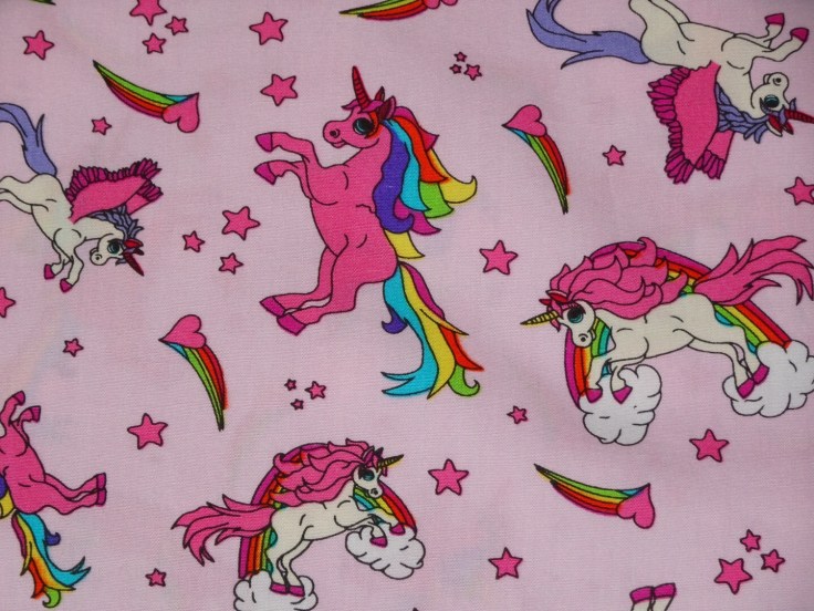 The unicorn print was also not as wide as the bunnies, so I couldn’t fit the facings onto the same piece of fabric. I should mention that I’d only bought 2 metres where the pattern envelope insists on 2.5 for her size but I thought I knew best. I also automatically added a couple of inches of length to the pattern pieces as she’s very tall; we’ll come back to that!