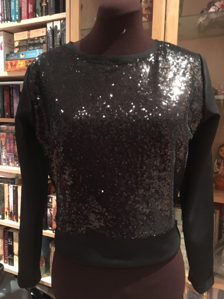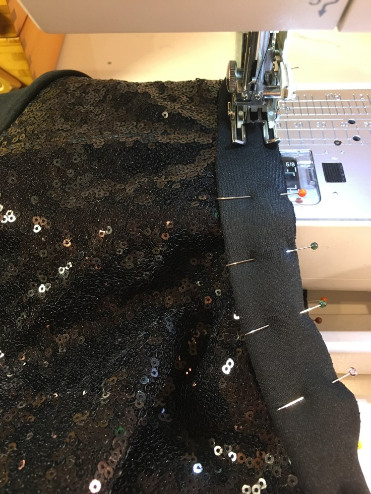 I also ramped up the glam by cutting the front bodice piece out of black sequins. This fabric is actually the remnants from my Christmas party top last year, so I’m happy with using some of it up.