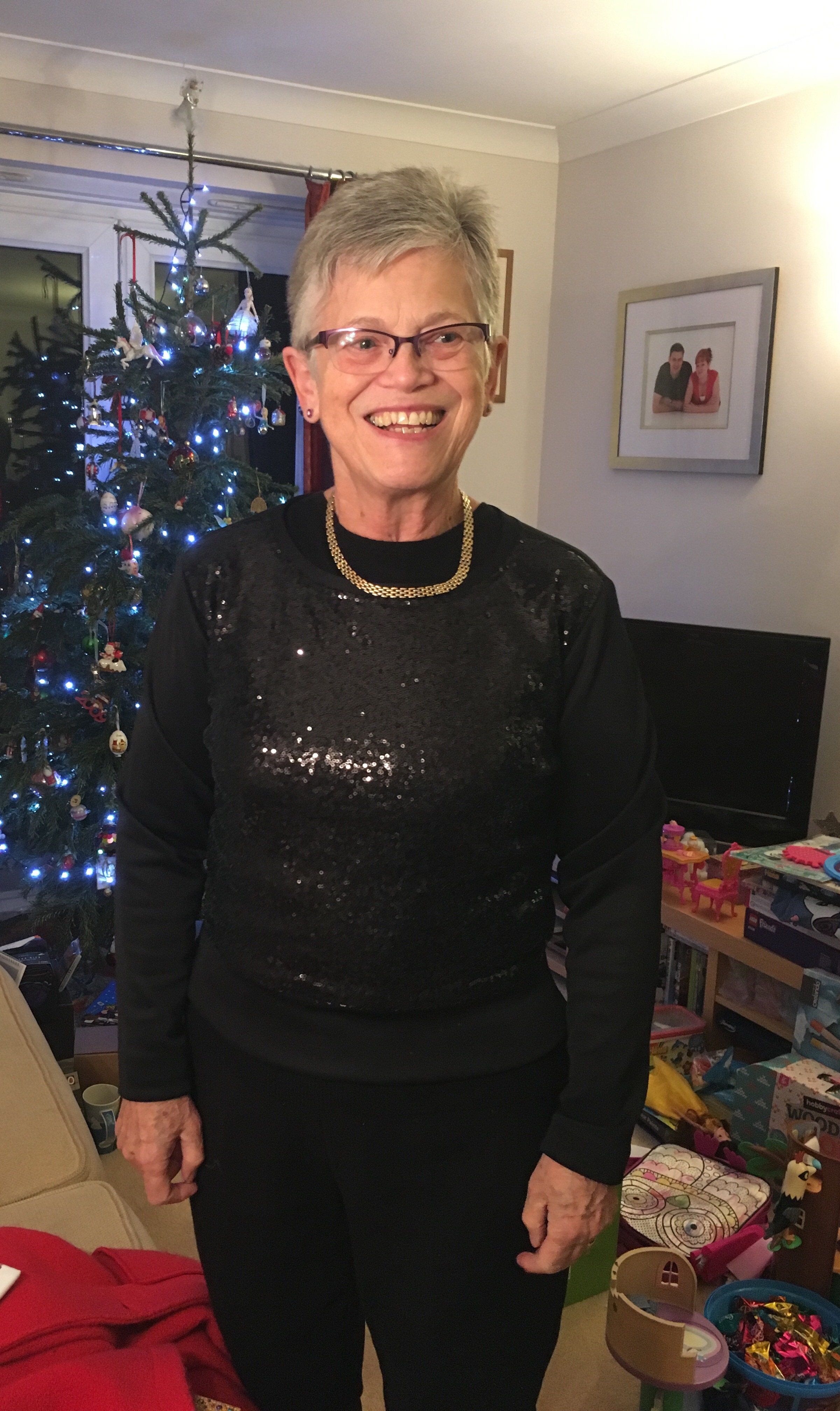 She commented last year on a sequinned front sweatshirt I’d bought from Oasis, saying it might solve her problems. So I’m hoping to have done that for her!