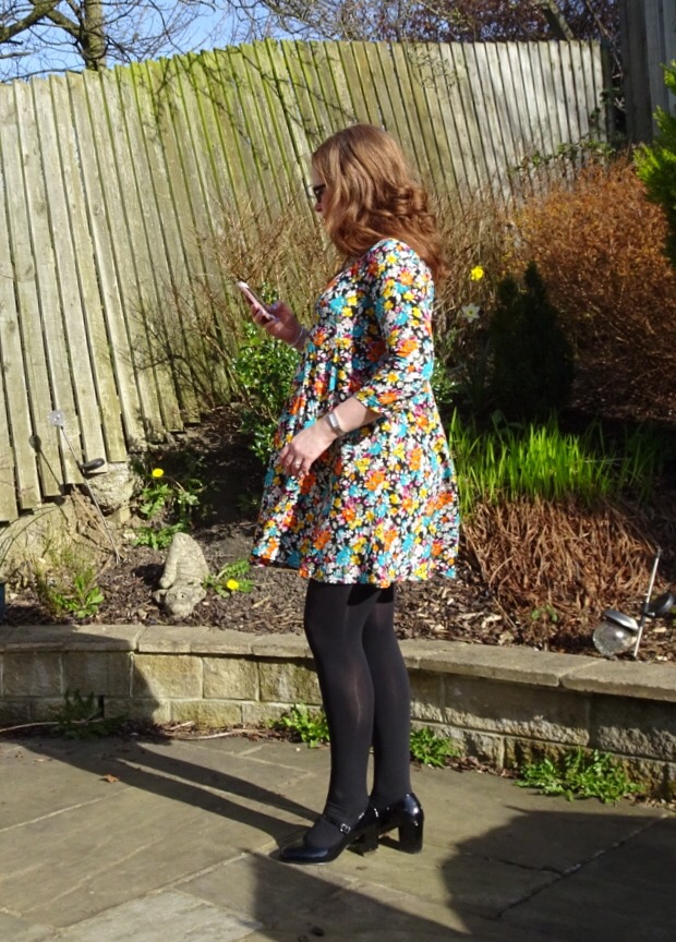 I’m glad I tried it out, but I have to say that I don’t think this dress is going to get bags of wear. For starters, it is very short, which makes me feel a little mutton dressed as lamb, plus in the floaty rayon…. well, you’d better be wearing sturdy pants if you’re planning on going outside!