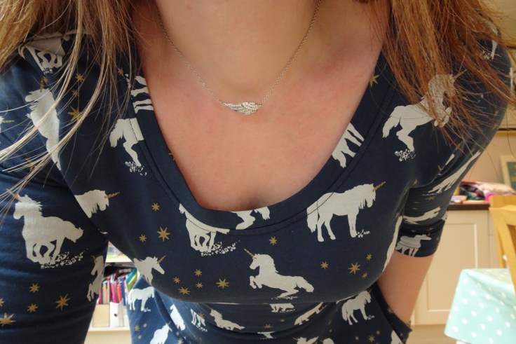Anyway, I was actually attracted by the print (who, me?); navy background covered with white unicorns with gold, sparkly horns. I decided that, having bought all manner of unicorn print fabric for the children, it was definitely my turn and bought 1.5m.