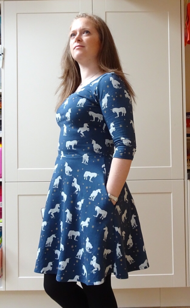I initially thought it would be the Moneta dress which would be used for this, but I suddenly decided I was somewhat bored of that particular pattern, especially as I also made one up for Mum using some fabric she bought. So I reverted to the Lady Skater dress by Kitschy Coo. The big difference between the two is the skirt; where the Moneta is a gathered waist, the Lady Skater is a flared skirt from a smooth waistline. I do tend to find that more flattering, plus it’s nice to have a change.