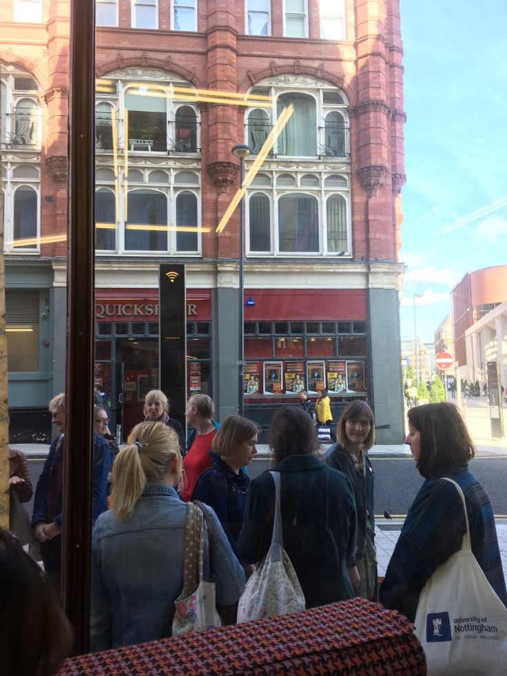 There was a somewhat awkward moment when Sally and I had to bellow for attention across the John Lewis cafe (which did have some non sewing people in it; apologies to them!) and then the huge crowd of people set off around Leeds.