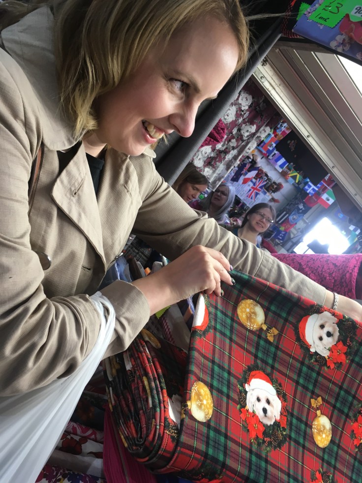 It was a brilliant day. Thanks to the pair of you for organising it. Someone did buy that tartan dog fabric and I laughed at her for it, but I didn’t catch the lady’s name. She said it was for her ‘granddaughter’! I also thought the staff at the venue should be applauded. With so many people ordering food at the same time it could have been disastrous but the food was excellent and they got it to us in good time. I was impressed! Thanks again. x