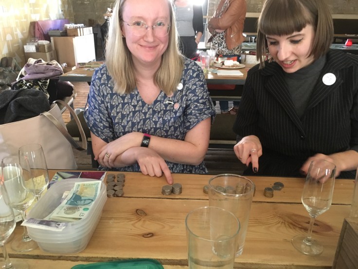 Again, ad hoc helpers dived in and helped me count the cash, which, after a couple of last minute donations to get us over the £1k mark, came to an outstanding £1,012!!!