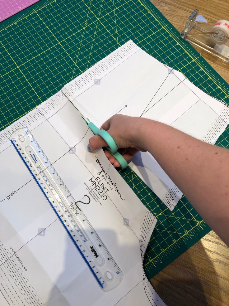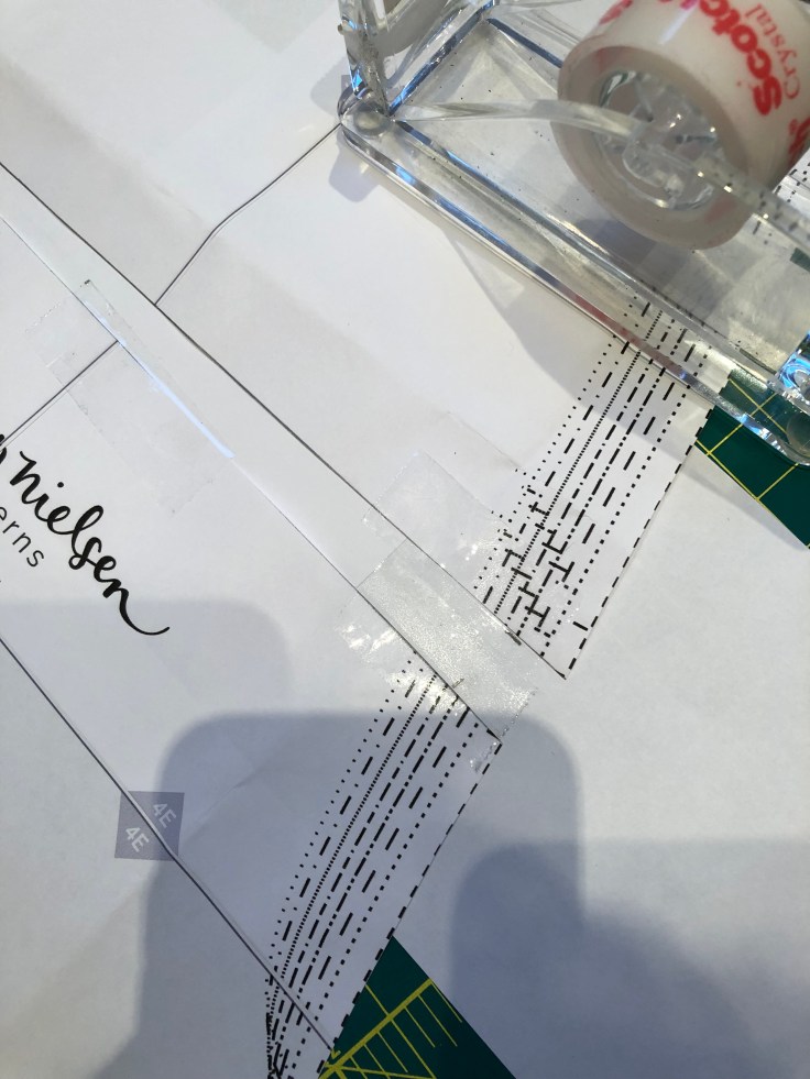 Finally, replace your old grainline on the top pattern piece so that it’s a continuation of the one on the bottom pattern piece.