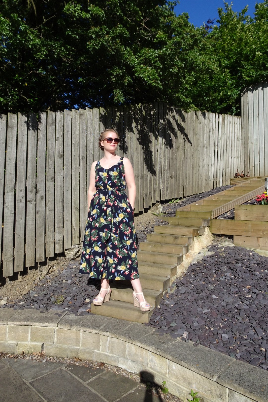 The Amy jumpsuit is a very wide legged, strappy, semi fitted jumpsuit designed to be made up in super floaty fabrics. Whilst in London a couple of weeks ago, I found the perfect tropical print rayon (?) at Sew Over It. The pattern calls for 3.5m of fabric, which makes it a not particularly cheap option, but I really loved it and knew what I wanted to make with it, so I went for it. But I did only buy 3m because I’m stubborn!