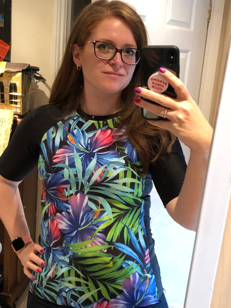The first item I made was a rash vest for myself using the Valerie pattern. I made this a few months ago using flexcite from Funki Fabrics: the black is the recycled fabric and the patterned is the normal fabric. They aren’t cheap, but then neither are RTW rashies so I was ok with that.
