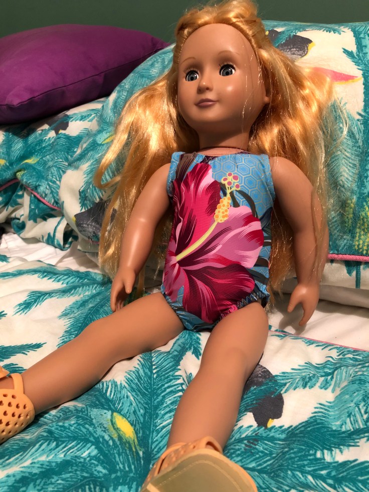 Rich had enormous fun picking his own fabric on the Funki Fabrics site and came up with this floral / solid combo which gave me some serious fabric envy! We only ordered half a metre of the floral though, which gave me enough to make Katie’s dolly a new suit but not me š.