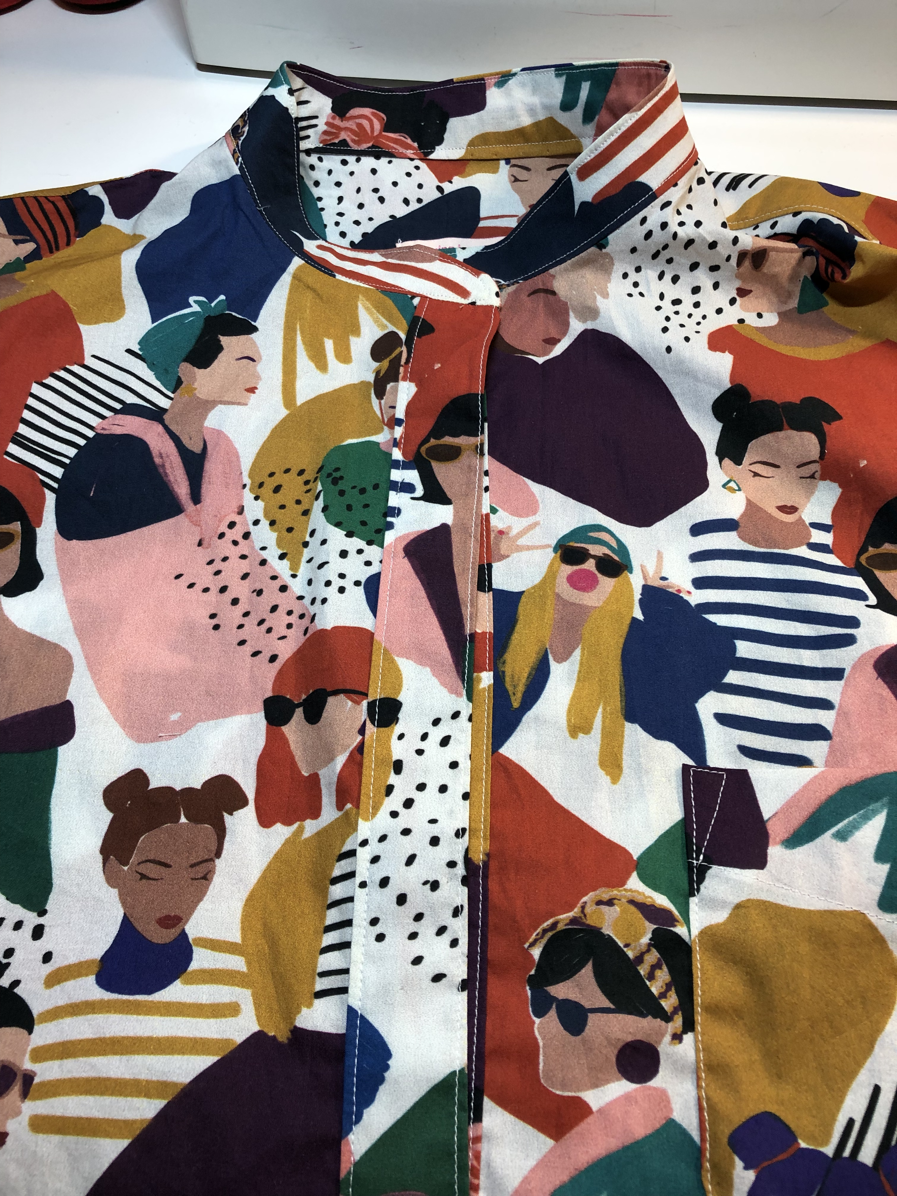 I really enjoy shirt making (there’s something very satisfying about all the steps and the burrito method and the plackets…) so I’ve been wanting to make a “proper” shirt version of this, but I knew the cropped view of the pattern was going to be too short for my comfort zone. Then Claire came to the Stitch Room Sewcial in the most beautiful white version that she’d hacked to the perfect length and I was sold!