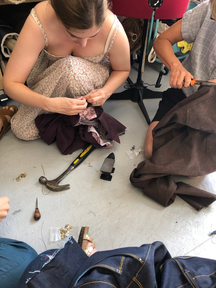 And finally, after using the one which Heather had somehow got through airport security, a mini anvil really does make getting those buttons hammered on a lot easier (and way, WAY more fun!)