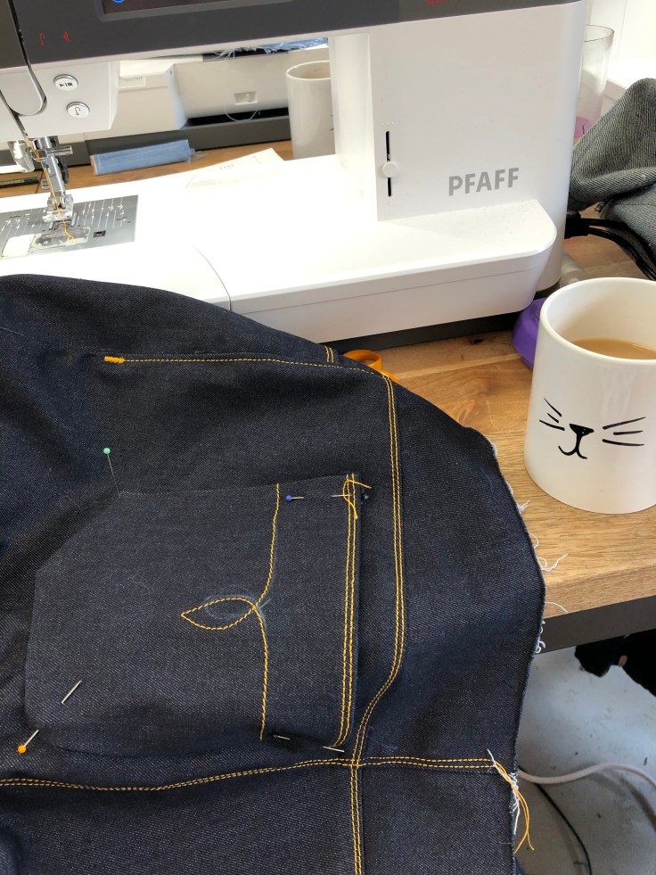 Heather Arnatt very kindly helped me pin fit the jeans, and Bee helped me embroider THE BEST BACK POCKETS THERE HAVE EVER BEEN. I set off home to sew them up.