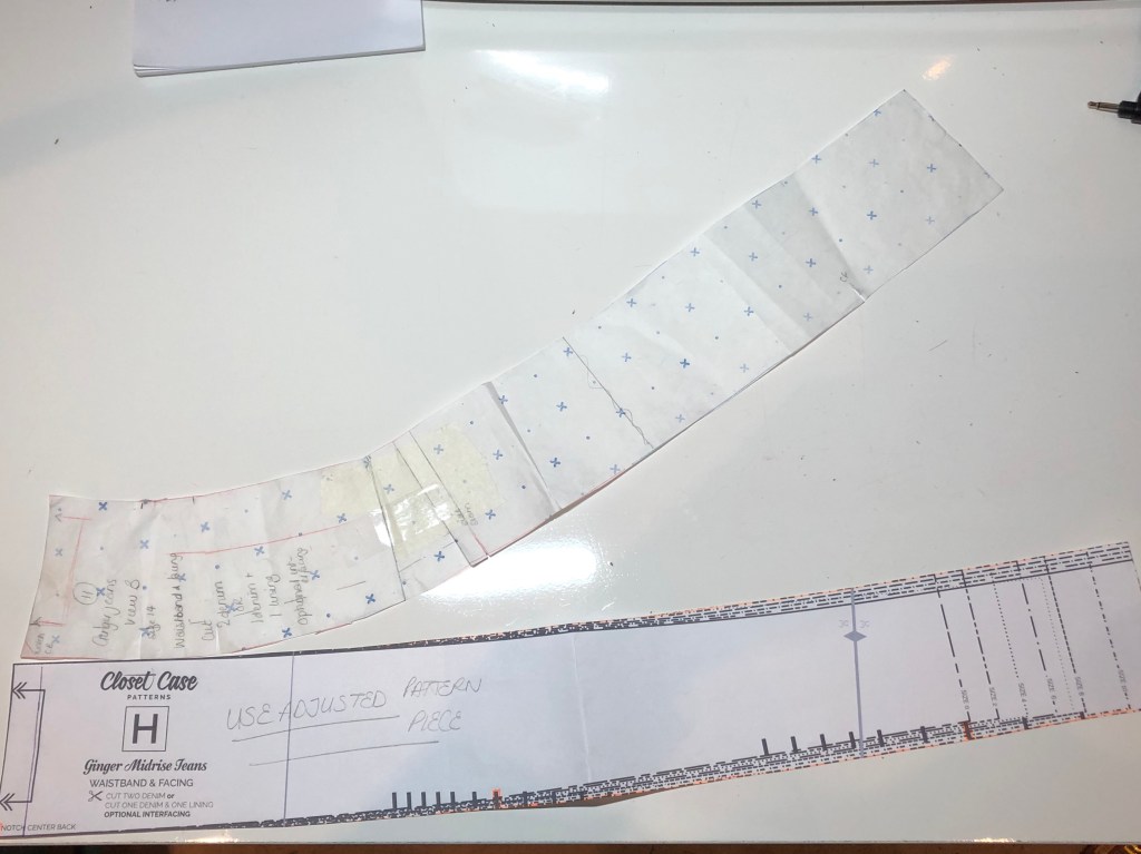 Armed with my new knowledge, I returned to the Ginger jeans pattern. I started by sizing down (I worked from a size 8 in the end), I graded, I curved that waistband A LOT and I tried again.