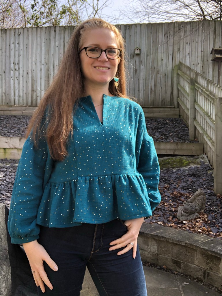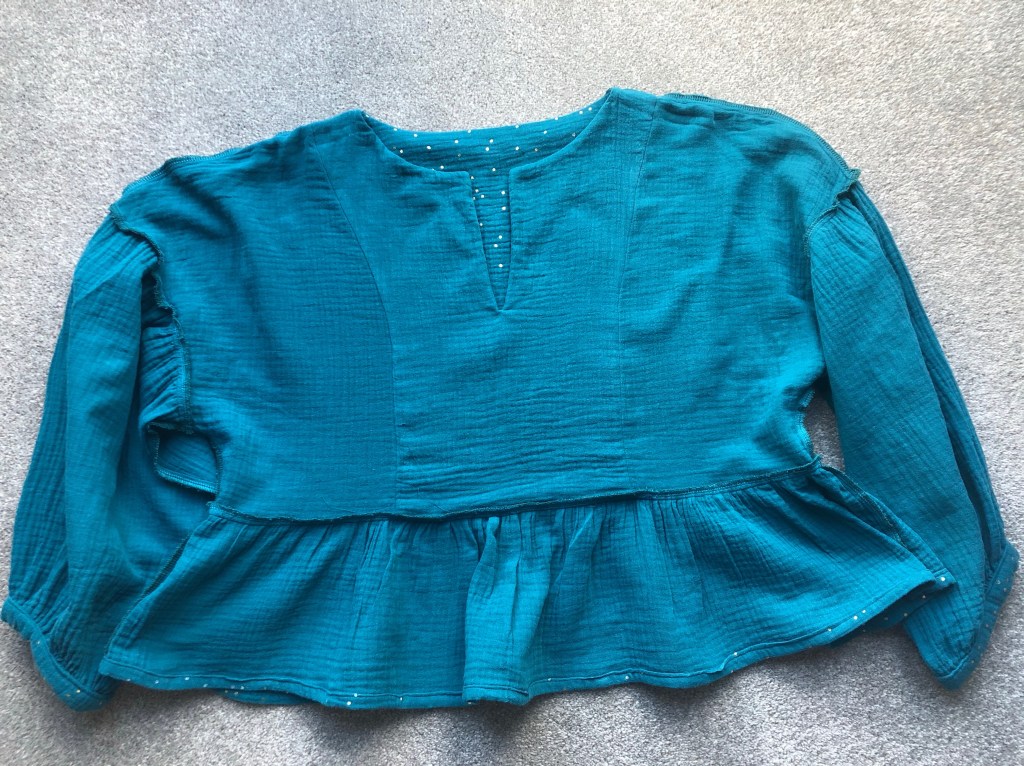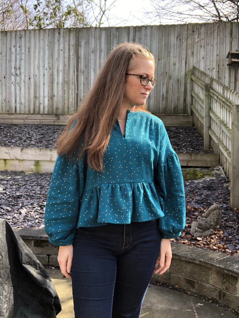 I find that I thoroughly love the finished top. It feels so comfy but somehow a bit special (is this because I’ve spent too long in sweatshirts recently?) incredibly, I finished this just in time for the 2 day March heatwave and it was absolutely perfect. The cropped length meant the sleeves didn’t feel overwhelming. And the interfacing held the neckline in place really well.